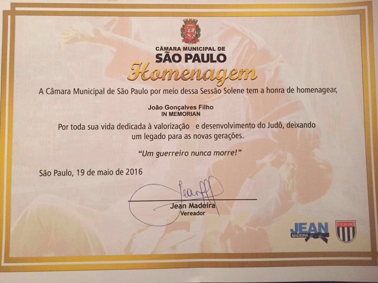 Com uma sessão solene no plenário da Câmara, cerca de mil judocas de todo estado de SP foram homenageados. O judô tem sua origem no Japão, e é um esporte de combate individual que no Brasil conquistou prestígio e popularidade por produzir bons resultados em nível internacional, sendo um dos esportes que mais trouxe medalhas olímpicas ao país.