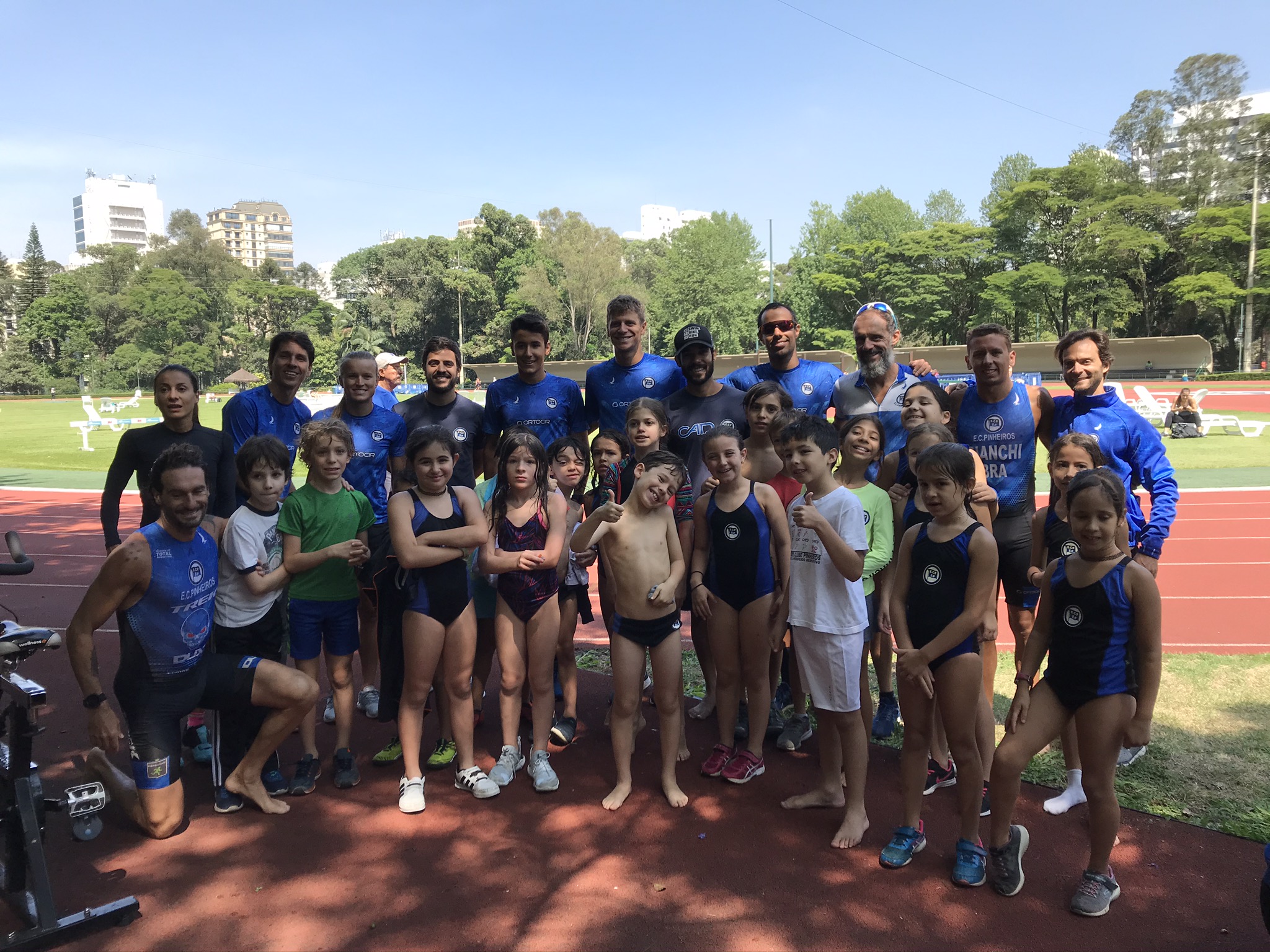 Eles conversaram com nossos atletas que explicaram como funciona e tiraram todas as dúvidas e depois vivenciaram o esporte, nadando na piscina externa, depois pedalando em bicicletas que estavam na pista e finalizavam com uma volta completa na pista, tudo com a ajuda de nossos atletas.
