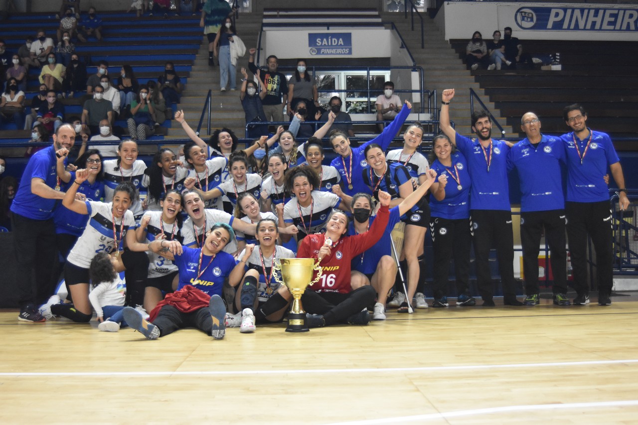 São Paulo (SP) – O Pinheiros é tricampeão paulista feminino de handebol. Conquistou o terceiro título consecutivo com a vitória sobre o Corinthians Guarulhos por 28 a 20 (14 a 9) neste domingo (19) no Henrique Villaboim, no terceiro jogo da série final, após uma vitória para cada equipe como visitante. A partida decisiva foi um pouco mais tranquila para o Pinheiros, que manteve vantagem segura, acima de quatro gols na maior parte dos 60 minutos.